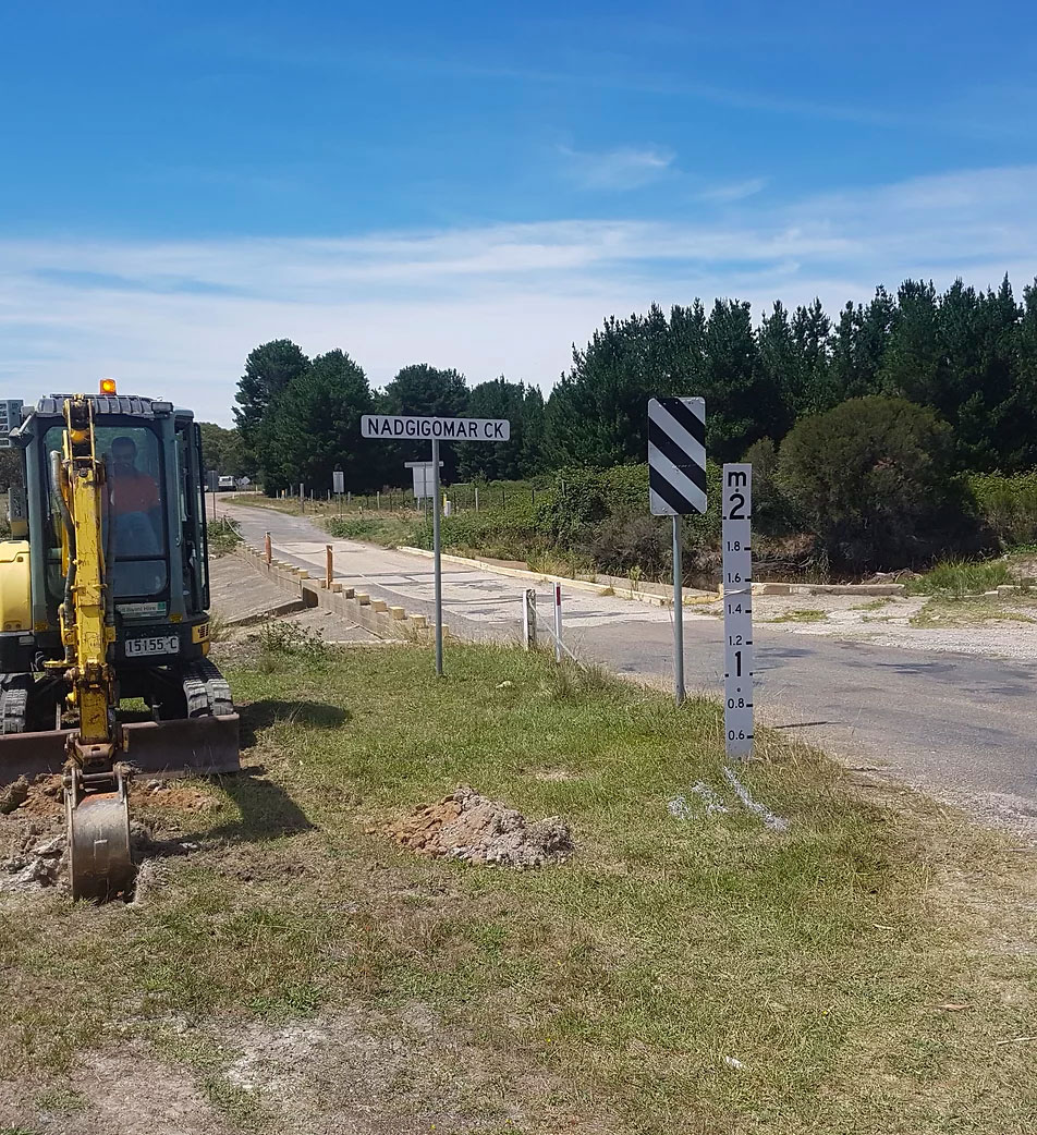 This project comprised the construction of a new bridge over Nadgigomar Creek to replace the existing causeway crossing. The concept design was for a three-span bridge to be supported on bored piles.
